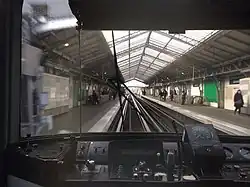 - ↑ Bei den ähnlich aufgebauten Hochbahnstationen der Linie 2 sind die Seitenwände verglast und nur die Bahnsteige, nicht aber die Gleise überdacht