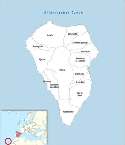 - ↑ Tourismus-Website für La Palma: La Palma Gemeindegliederung. ( des vom 21. Oktober 2007 im Internet Archive) Info: Der Archivlink wurde automatisch eingesetzt und noch nicht geprüft. Bitte prüfe Original- und Archivlink gemäß Anleitung und entferne dann diesen Hinweis. In: lapalmaturismo.com