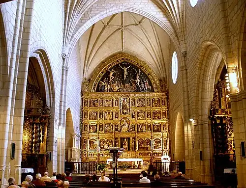 - Die Iglesia de Nuestra Señora de la Asunción ist der Himmelfahrt Mariens geweiht. Mit dem Bau der dreischiffigen Hallenkirche wurde Ende des 15. Jahrhunderts begonnen; beide Portale zeigen deutliche Anklänge an die Spätgotik. Das Sterngewölbe des Mittelschiffs übertrifft die einfacheren Gewölbe der Seitenschiffe deutlich; alle drei Apsiden schließen flach. Der in zahlreiche Felder unterteilte Renaissance-Schnitzaltar aus dem Jahr 1535 zeigt Szenen aus dem Marienleben und endet in einer eindrucksvollen Kreuzigungsgruppe mit gemaltem Sternenhintergrund.[7]