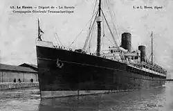 Das Dampfschiff La Savoie wurde auf der Werft Chantier et Ateliers de Saint-Nazaire in Saint-Nazaire gebaut und lief am 31. März 1900 vom Stapel. Das 171,63 Meter lange und 18,29 Meter breite Schiff wurde von zwei vierzylindrigen Dreifachexpansions-Dampfmaschinen angetrieben, die 22.000 PS (ca. 16.200 kW) leisteten und eine Höchstgeschwindigkeit von 21,5 kn (40 km/h) ermöglichten. Die vorgesehene durchschnittliche Reisegeschwindigkeit lag aber bei 20 kn (37 km/h).[1] Der Dampfer konnte 437 Passagiere in der Ersten Klasse, 118 in der Zweiten Klasse und 398 in der Dritten Klasse befördern.