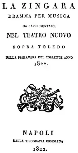 ![]() Titelblatt des Librettos, Neapel 1822 | |