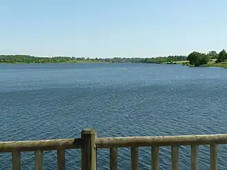 Wie auch der benachbarte Lac de Lavaud wird der Stausee von einer Straßentrasse in zwei sehr ungleiche Hälften geteilt – in diesem Fall von der D 163 von Massignac nach Saint-Quentin-sur-Charente. Ein betonierter Durchlauf innerhalb der als Damm dienenden Straßenaufschotterung ermöglicht den Wasseraustausch. Der Nordabschnitt des Stausees ist 4 Kilometer lang und verläuft in Nord-Süd-Richtung. Der wesentlich kleinere Südteil misst nur 1 Kilometer und endet am Ostausgang von Massignac an der D 13 von Massignac nach Verneuil.