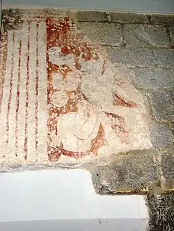 Auf dem oberen Bereich eines der Wände des Chors fällt der Blick auf ein Fragment eines Freskos. Mehrere Partien von Personen sind zu sehen, so dass davon auszugehen ist, dass es sich nicht um ein dekoratives Motiv, sondern um ein Teil eines Freskos handelt, typisch für eine romanische Bauweise. Die Schaffung dieser Art von Wandmalerei erlebte ihren Höhepunkt im 11. und 12. Jahrhundert, da es in romanischen Kirchen der Epoche wenige Fensteröffnungen gab, ergab sich die Notwendigkeit, die großen Wandflächen sinnvoll zu nutzen.[25]
