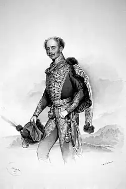Er wurde im 1821 zum Major beim k.u.k. Husarenregiment „Kaiser“ Nr. 1 und 1826[6] zum Oberstleutnant beim k.u.k. Dragonerregiment „Friedrich Franz IV. Großherzog von Mecklenburg-Schwerin“ Nr. 6, dessen Inhaber Ludwig von Wallmoden-Gimborn war, befördert; 1828 erfolgte seine Rückversetzung zum Husarenregiment „Kaiser“ Nr. 1. 1829[7] wurde er zum Oberst und Kommandanten des k.u.k. Husarenregiments „Graf Nádasdy“ Nr. 9 befördert[8].