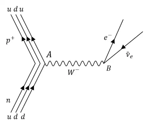 Die Leptonenzahl bleibt hier erhalten, da für das Neutron n sowie das Proton p+ gilt , für das Elektron e−, und für das Anti-Elektron Neutrino .