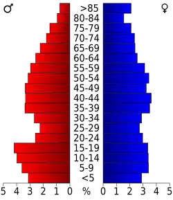 21,1 Prozent der Bevölkerung waren unter 18 Jahre alt, 60,6 Prozent waren zwischen 18 und 64 und 18,3 Prozent waren 65 Jahre oder älter. 51,5 Prozent der Bevölkerung war weiblich.