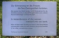 Im Rahmen der 76. Befreiungsfeier in der Gedenkstätte Ravensbrück wurde am 18. April 2021 ein Gedenkzeichen für die Frauen, die zur Sexarbeit in den Konzentrationslagern gezwungen wurden, eingeweiht.[26]