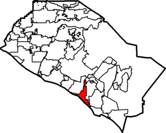 | Fläche: | 25,2 km2 (ca. 10 mi²) davon 22,9 km2 (ca. 9 mi²) Land | ||