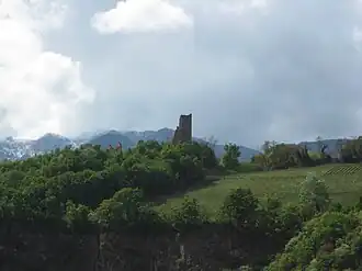 Burgruine Laimburg von der Sohle des Etschtals aus gesehen | ||