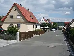 1932/33 wurde am westlichen Ortsausgang das Kleinsiedlungsprojekt „Siedlung Laineck für Arbeiterfamilien“ mit Mitteln des Reichsheimstättengesetzes realisiert.[8] Dort wurden, vorwiegend für kinderreiche[7] Handwerkerfamilien, zu Doppelhäusern zusammengefasste Siedlungshäuschen errichtet.[8] Das Gelände der Siedlung wurde 1933 aus der Gemeinde ausgegliedert und der Stadt Bayreuth zugeschlagen,[13] 1939 folgte der Bereich des damaligen Flugplatzes.[14]