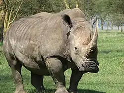 Der Nationalpark ist auch ein Nashorn-Schutzgebiet mit einer Population von mehr als 60 Spitz- und Breitmaulnashörnern, die aus allen Teilen Kenias hierher gebracht wurden und von 14 Rangern (Wildhütern) rund um die Uhr geschützt werden. Die beiden Nashornarten kann man schon von weitem leicht unterscheiden: Spitzmaulnashörner (Black rhino) tragen den Kopf hoch und zupfen mit ihren spitzen Lippen Blätter von Büschen und kleinen Bäumen. Breitmaulnashörner (White rhino) fressen mit gesenktem Kopf und ihren weiten Mäulern ausschließlich Gras. „White“ hat also nichts mit der Farbe zu tun, sondern ist eine englische Sprachumdeutung von „wide“ = weit oder breit.