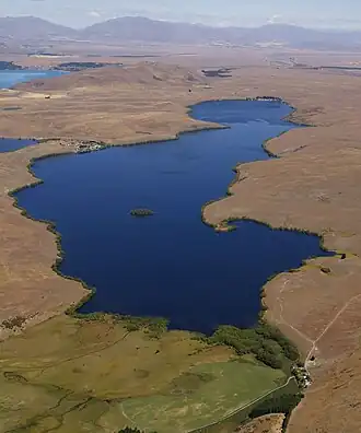 | Abfluss | 650 m langer Bach zum östlich angrenzenden Lake McGregor und weiter über einen 1250 m langen Bach in den Lake Tekapo | |