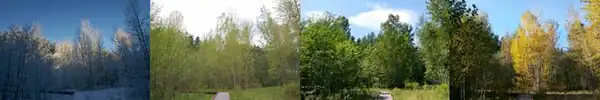 - Der Horizon View Park liegt auf dem höchsten Punkt von Lake Forest Park (19800 198th St./ 47th Ave. NE) und enthält Rasenflächen, einen Kinderspielplatz mit Schaukeln und einer Spiel-Eisenbahn, ein Basketball-Halbfeld, Tennisplätze, Spielfelder, Picknick-Tische und befestigte Wege durch ein natürliches, waldartiges Gebiet; er bedeckt 8,4 Acres (3,4 ha).[13]