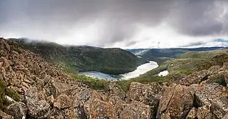 Er liegt im Zentrum des Mount-Field-Nationalparks. In ihm entsteht der Broad River.