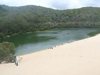 Lake Wabby ist ein grünlicher Süßwassersee im Osten der australischen Insel K’gari im Great Sandy National Park. Der See grenzt direkt an die Sanddüne Hammerstone Sandblow, die sich langsam auf den See zubewegt. Mit der Zeit wird der See unter der Düne, durch die er gebildet wurde, verschwinden. Es ist der tiefste See der Insel.[1]