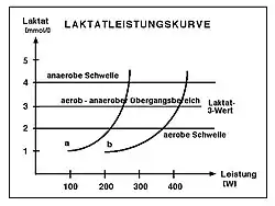 Bei untrainierten Personen kommt es ab ca. 50 %, bei Ausdauerathleten der Spitzenklasse bei ca. 90 % der maximalen Sauerstoffaufnahme zu einem zunehmend steilen Anstieg der Laktatkonzentration im Blut. Die maximale Laktatkonzentration im Blut wird – abhängig von der erzielten maximalen Belastungsintensität – in der Regel erst einige Minuten nach Belastungsende erreicht.