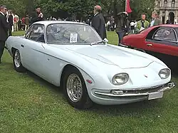 - Im Auftrag Lamborghinis überarbeitete die Carrozzeria Touring in Mailand Scagliones Karosserieentwurf im Laufe des Jahres 1964. Verantwortlicher war Giorgio Prevedi. Er behielt Scagliones Linien weitgehend bei, änderte aber zahlreiche Details im Hinblick auf eine rationelle Serienproduktion.[31] So entfielen die Klappscheinwerfer zugunsten stehender Ovalleuchten, die je nach Quelle entweder von Hella bezogen und zur gleichen Zeit auch am NSU Prinz 1000 und am Ford Taunus P3 („Badewanne“) verwendet wurden[22] oder die Cibié für den Citroën Ami 6 produzierte.[31] Die hintere Dachlinie wurde ebenfalls geändert; ihre Rundung wurde so verkürzt, dass ein nutzbarer Kofferraumdeckel installiert werden konnte. Beobachter waren der Ansicht, dass Scagliones Entwurf dadurch nicht verbessert wurde.[16]