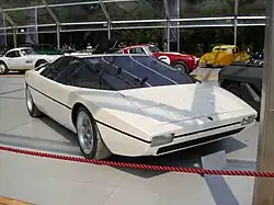 Der Lamborghini Bravo (intern P 114 genannt) wurde 1974 als Showcar präsentiert. Der Wagen wurde von Bertones Chefdesigner Marcello Gandini gestaltet. Er basiert auf dem um 200 mm verkürzten Chassis des Lamborghini Urraco P300. Er war dem Countach ähnlich, vor allem die hinteren Radkästen und die schräg stehende Frontscheibe.[10] Angetrieben wurde der Bravo von einem auf 300 PS (221 kW) getunten V8 mit 90° Gabelwinkel aus Aluminium mit Getriebe und Differenzial aus dem Urraco P300. Das Leergewicht betrug 1285 kg und die Höchstgeschwindigkeit lag bei 275 km/h. Lamborghini dachte zwar an eine Serienproduktion, konnte sie aber wegen der Energiekrise und der schlechten finanziellen Lage des Unternehmens nicht realisieren. Im Mai 2011 wurde das Unikat von RM Auctions anlässlich des Concorso d’Eleganza Villa d’Este in Cernobbio zu einem Preis von 588.000 Euro versteigert.[11]