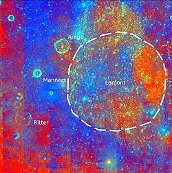 Lamont ist ein ovale Oberflächenstruktur auf der Mondvorderseite in der Ebene des Mare Tranquillitatis, südöstlich des Kraters Arago.