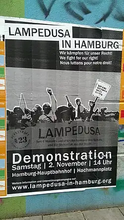 - ↑ "Der Protest von "Lampedusa in Hamburg"