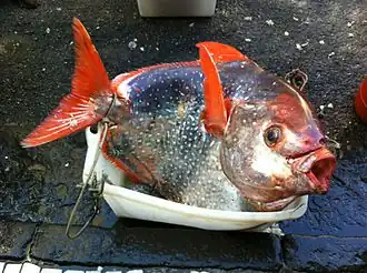 2. a b c Underkoffler, K.E., Luers, M.A., Hyde, J.R. & Craig, M.T. (2018): A taxonomic review of Lampris guttatus (Brünnich 1788) Lampridiformes; Lampridae) with descriptions of three new species. Zootaxa, 4413 (3): 531–540. DOI: 10.11646/zootaxa.4413.3.9