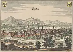 - ↑ Emil Heuser: Die dritte und vierte Belagerung Landaus im Spanischen Erbfolgekrieg. 1704 und 1713. Ed. Kaußlers Buchhandlung, Landau Pfalz 1896, S. 257.