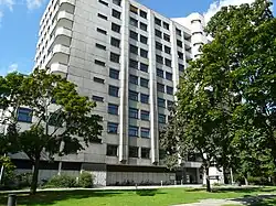 Das Verwaltungsgebäude in der Sächsischen Straße in Wilmersdorf, das heute als Außenstelle vom LAGeSo Sitz des Versorgungsamtes ist, wurde 1936–38 nach den Plänen des Architekten Philip Schäfer (1885–1952) für die Gauamtsleitung der NS-Volkswohlfahrt als fünfgeschossiger Putzbau mit Walmdach errichtet. Nach dem Zweiten Weltkrieg wurde es am 3. April 1952 zum Haus der Kriegsopferversorgung. Später wurde es zum Landesversorgungsamt, das 1985 in das Landesamt für Zentrale Soziale Aufgaben umgewandelt wurde. Seit dem 1. Januar 1998 heißt es Landesamt für Gesundheit und Soziales Berlin.[2]
