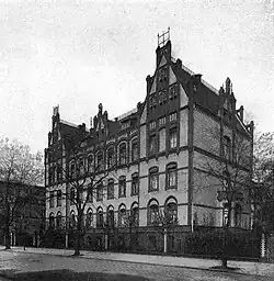 Die Ursprünge gehen auf eine Anordnung Friedrich II. von Preußen aus dem Jahre 1772 zur Gründung von Provinzial-Hebammenlehranstalten zurück. Wilhelm Voigtel (1767–1844) wurde 1795 zum Hebammenlehrer an die Magdeburger Provinzialschule berufen. 1798 schloss er ihr die erste geburtshilfliche Klinik, das Gebärhaus, an.[1] 1823 löste ihn Friedrich Leberecht Trüstedt (1791–1855) als Direktor der Hebammenlehranstalt ab.[2] Bereits nach zwei Jahren übernahm Carl Eduard Voigtel (1801–1868), ein Neffe von Trüstedts Vorgänger, die Einrichtung, die er von 1826 bis 1864 leitete. Von 1827 bis 1849 vertrat er zusätzlich an der Medizinisch-chirurgischen Lehranstalt die Theorie der Geburtshilfe, die von August Varges (1793–1863) von 1827 bis 1849 praktisch unterrichtet wurde.[3] Varges war bereits seit 1823 Lehrer für die praktische Ausbildung an der Magdeburger Hebammenlehranstalt.[4] 1876 ging die Hebammenschule in der Kreuzgangstraße 10 und 11 in die Verwaltung der Provinz Sachsen über und wurde damit zur Provinzial-Hebammenlehranstalt. Vorübergehend war Johannes Benjamin Brennecke (1849–1931) an der Provinzial-Hebammenlehranstalt tätig, der sich 1876 als erster Facharzt für Frauenheilkunde in Magdeburg niedergelassen hatte. Brennecke trat für eine Erweiterung des Netzes geburtshilflicher Kliniken neben den damals fast nur vorhandenen Ausbildungskliniken ein, da diese von mittellosen verheirateten Frauen weitgehend gemieden wurden. 1880 eröffnete er im Magdeburger Stadtteil Sudenburg eine Privatklinik in Trägerschaft eines Frauenvereins unter der Bezeichnung Wöchnerinnenasyl. Die Einrichtung ersetzte bis 1919 eine bis dahin noch fehlende städtische Frauenklinik.[5][6]