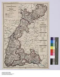 - ↑ Vollzugsverordnung zum Gesetze über die Organisation der Inneren Verwaltung; insbesondere die Einrichtung und Zuständigkeit der Behörden und das Verfahren betreffend. IV. Von den Landeskommissären. In: Großherzoglich Badisches Regierungs-Blatt Nr. XXXI. vom 30. Juli 1864, S. 340–344