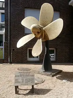 Vor den beiden Gebäuden stand ein im September 1984 aufgestellter originaler Schiffspropeller, der als Geschenk der mittleren Werften Schleswig-Holsteins und eines Lübecker Herstellers von Schiffsantriebsanlagen an die Landesvertretung auf die Bedeutung des Schiffbaus und der Fischerei für das Land hinweisen sollte. Der Propeller war fünfflügelig, bestand aus Manganbronze und wurde ursprünglich für ein Hochseeschiff hergestellt.[10]