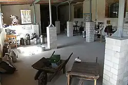 Zwischen den Hallen stehen noch Maschinen, die nicht in die Halle passen, wie Dreschkästen, Mähdrescher und andere Großgeräte. Auch Sammlungen von Pflügen werden in den Freiflächen des großräumigen Hofes ausgestellt. Bei Halle 6 befindet sich ein Streichelzoo von Haustieren (z. B. Ziegen, Schafe, Kaninchen usw.). Mitten auf dem Hof steht ein altes Trafo-Haus, das jetzt als Taubenschlag mit einer umgebenden Voliere genutzt wird.