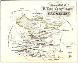 Das Landkommissariat Landau gliederte sich in die Kantone Edenkoben und Landau und umfasste 49 Gemeinden (alle Orte in der amtlichen Schreibweise von 1817):[1]