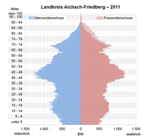 - ↑ Archivierte Kopie (Seite nicht mehr abrufbar. Suche in Webarchiven) Datenbank Zensus 2011, Kreis Aichach-Friedberg, Alter und Geschlecht