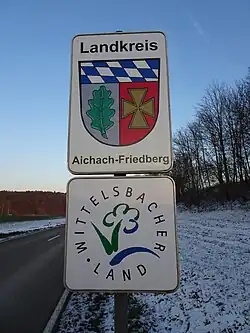 - ↑ Das Landkreiswappen. Landkreis Aichach-Friedberg, abgerufen am 4. September 2017.