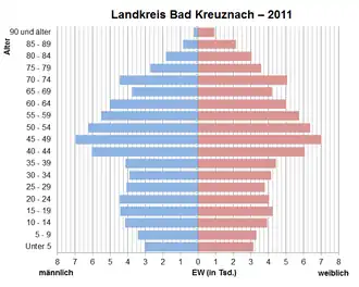 - ↑ Datenbank Zensus 2011, Kreis Bad Kreuznach, Alter und Geschlecht ( des vom 22. September 2021 im Internet Archive) Info: Der Archivlink wurde automatisch eingesetzt und noch nicht geprüft. Bitte prüfe Original- und Archivlink gemäß Anleitung und entferne dann diesen Hinweis.