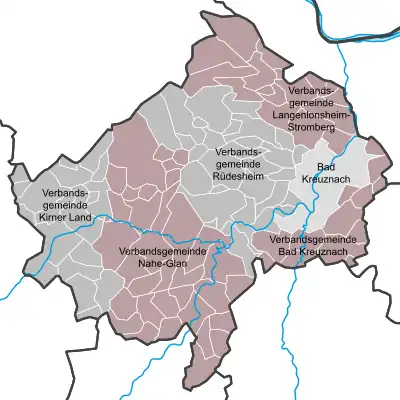 Der Landkreis Bad Kreuznach ist eine Gebietskörperschaft im Zentrum von Rheinland-Pfalz. Sitz der Kreisverwaltung und zugleich bevölkerungsreichste Kommune ist die gleichnamige verbandsfreie Stadt Bad Kreuznach.
