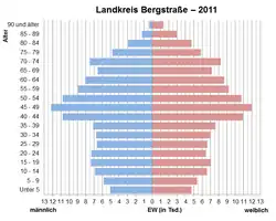 Bevölkerungspyramide für den Landkreis Bergstraße (Datenquelle: Zensus 2011[11])