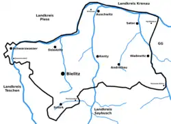 Nachdem im Frühjahr 1940 feststand, dass die Grenzen nicht mehr verändert werden sollten, wurde aus den früheren Kreisgebieten Biala, Bielitz und Teilen von Wadowitz der deutsche Landkreis Bielitz gebildet, mit über 300.000 Einwohnern im Jahr 1942.