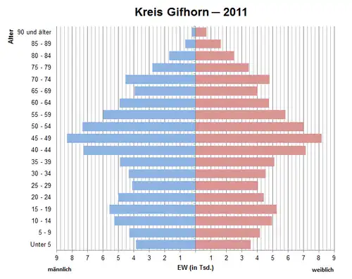 - ↑ Datenbank Zensus 2011, Kreis Gifhorn, Alter + Geschlecht ( vom 22. September 2021 im Internet Archive)
