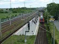 Über die Berlin-Hamburger Bahn verlaufen die Linien RE2, RB10, RB14, RE6 und RE8. Alle Linien bis auf RE6 und RE8 enden in Nauen und halten an jedem an der Strecke liegenden Bahnhof; die Linie RE8 verläuft weiter über Neustadt (Dosse) bis nach Wittenberge. Die Linie RE6 hält nur am Bahnhof Falkensee und biegt dann in Richtung Hennigsdorf von der Berlin-Hamburger Bahn ab.[21]