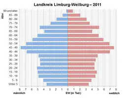 - ↑ Datenbank Zensus 2011, Kreis Limburg-Weilburg, Alter und Geschlecht ( vom 22. September 2021 im Internet Archive)