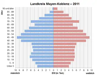 Bevölkerungspyramide für den Kreis Mayen-Koblenz (Datenquelle: Zensus 2011)[4]