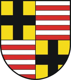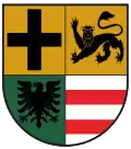 Blasonierung: „Geviert, 1 und 4 in Gold ein schwarzes Kreuz, 2 und 3 siebenmal geteilt Silber über Rot.“ Es entstand aus der Zusammenführung der Landkreiswappen von Querfurt und Merseburg.