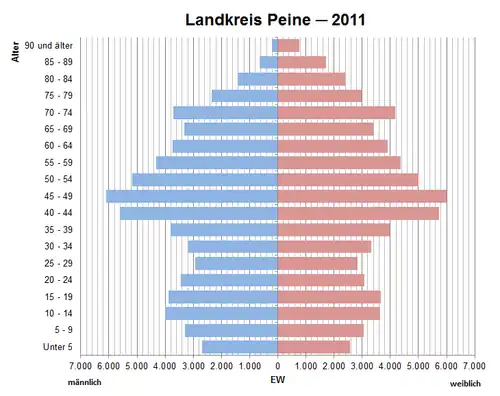 - ↑ Datenbank Zensus 2011, Kreis Peine, Alter + Geschlecht ( vom 22. September 2021 im Internet Archive)