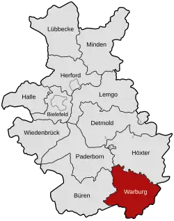 | Lage des Kreises Warburg in Nordrhein-Westfalen | |