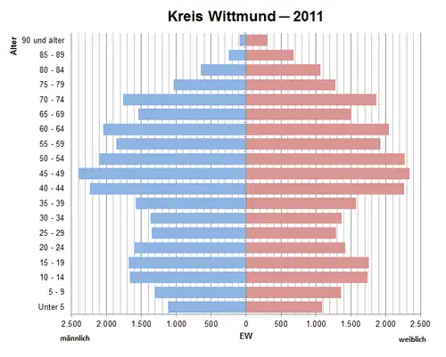 - ↑ Datenbank Zensus 2011, Kreis Wittmund, Alter + Geschlecht