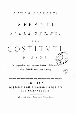 - Appunti sulla genesi dei Costituti pisani. Emilio Pacini, Pisa 1929 (italienisch, beic.it).