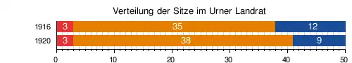 Nach den Wahlen von 1916 bis 2020 war die Sitzverteilung im Urner Landrat wie folgt: