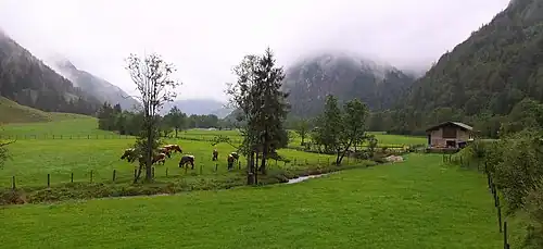 Die Besonderheit der Landschaft liegt in ihrer Ursprünglichkeit. Auf kleinräumigen Weideflächen, die teilweise auch im Talbereich liegen, werden Almen (Bergweiden) seit Jahrhunderten[4] in traditioneller Art und Weise bewirtschaftet. Infolge dieser bäuerlichen Nutzung haben sich um die ehemaligen Gehöfte die Siedlungen Wohlmuting und Taxerau gebildet.[5]