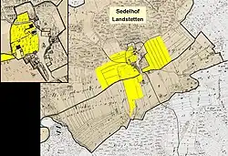 Ein Gehöft, das mit den Fluren Landstettens an Polling ging, wird 1532 in einer Beschreibung der Untertanen im Landgericht Weilheim erwähnt: Jorg und Hanns Mair (be)pauen 1 Sedel Hof miteinander, gehört dem von Pollingen zu.[7] Ein Sedelhof war ein privilegierter Bauernhof, der keine Scharwerksdienste zu leisten hatte und in der Regel auf eine sehr frühe Entstehungszeit zurückgeht. Bewirtschaftet wurde er – zumindest einmal in seiner Geschichte – von einem Verwalter („Maier“ genannt) eines adligen oder geistlichen Grundherrn. Aus dieser Bezeichnung, der Hofausfahrt unmittelbar auf die ursprünglichen Felder sowie dem Hausnamen „Mayr“ lässt sich entnehmen, dass es sich um den „Urhof“ der Siedlung handelt. Die weitere Entwicklung des Dorfes lässt sich anhand von Dokumenten und der Flurkarte von 1810 zurückverfolgen.